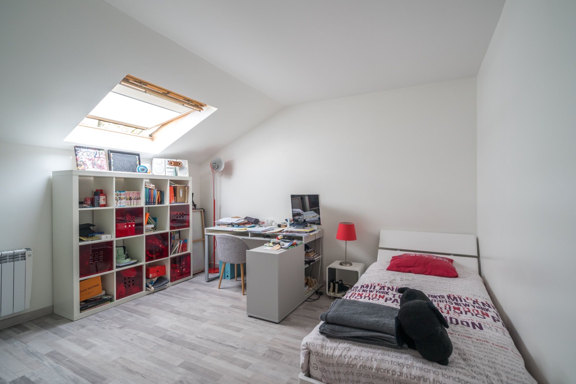 en rez de jardin : l'entrée dessert un salon et un séjour cheminée traversant, une cuisine aménagée et équipée haut de gamme, une chambre et salle d'eau et toilettes invités. Au 1er étage : 3 grandes chambres, une salle bain avec toilettes, un grand palier aménageable en espace de jeux ou de bureau. Au sous-sol : un espace bibliothèque, une grande pièce télévision-bureau- chambre d'amis et une salle d'eau avec des toilettes. Nous avons aussi une buanderie, une cave pour le vin, un emplacement pour 2 voitures et des vélos.